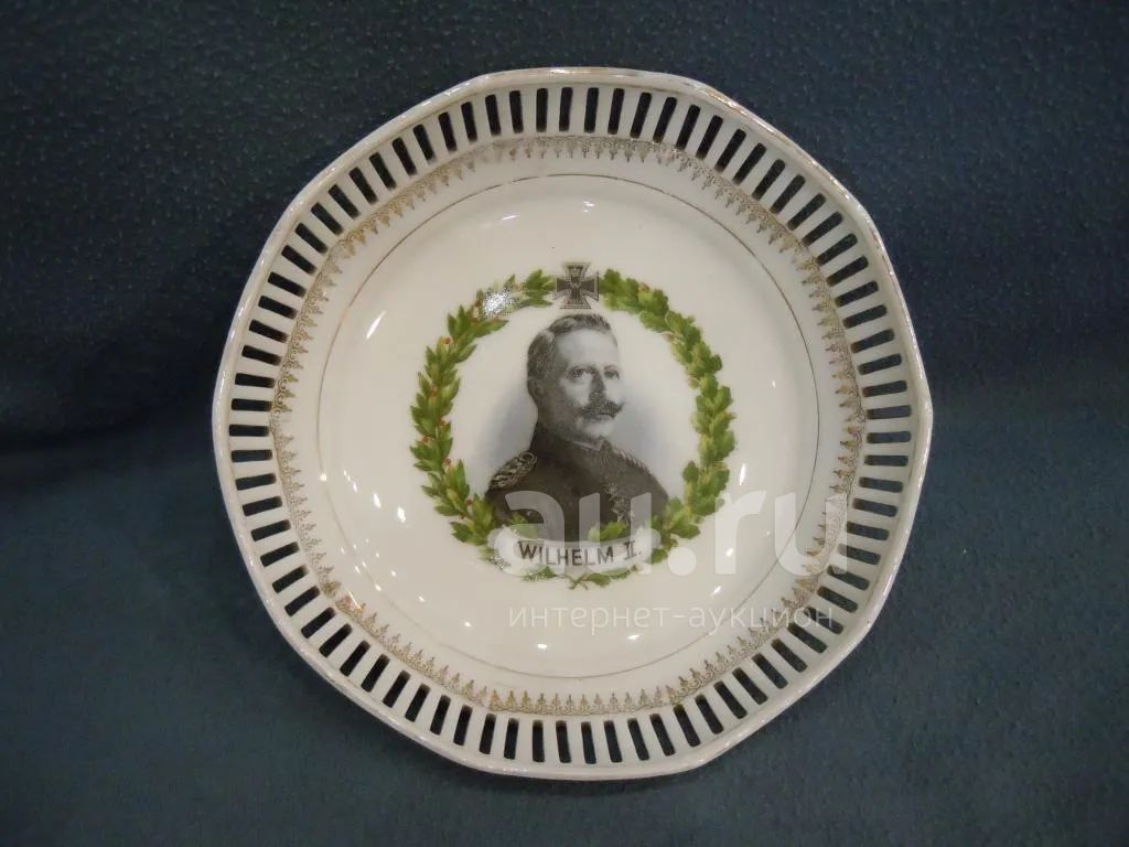 Конфетница, сухарница, Вильгельм II, 1914-1918гг (патриотика), фарфор, диаметр 17см, в отличном состоянии, без сколов, трещин и реставрации №349-34